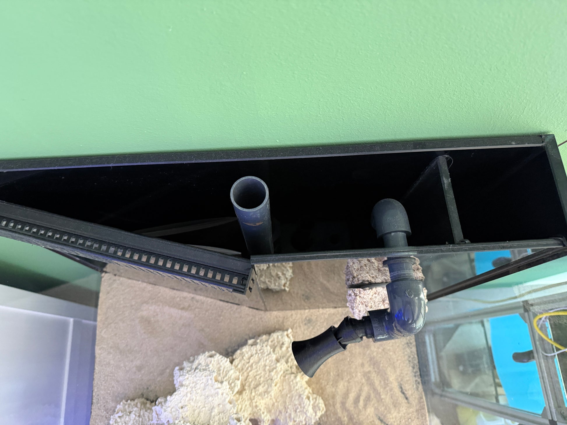 - Einzigartiges „unsichtbares Ablaufschacht“-Design aus schwarzem Glas, das fast im hinteren Teil des Aquariums verschwindet.