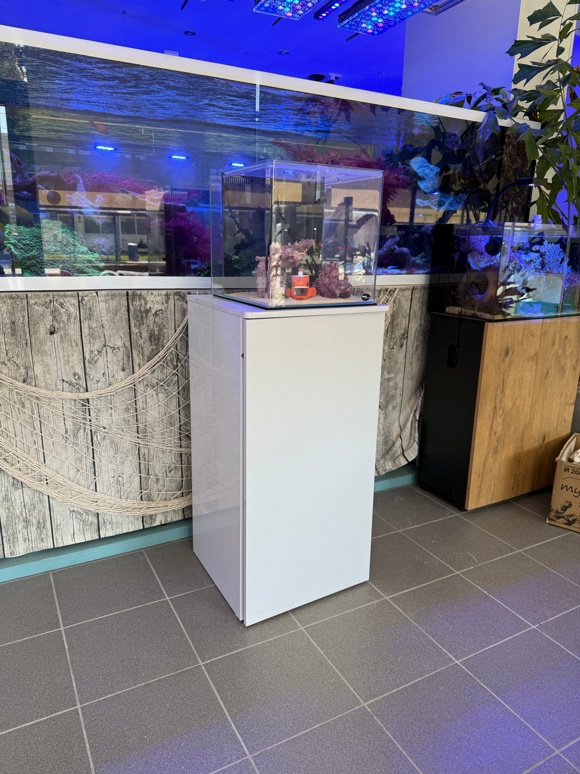 Das Weißglasaquarium mit den Maßen L 34,5 cm x B 39,5 cm x H 35,3 cm
