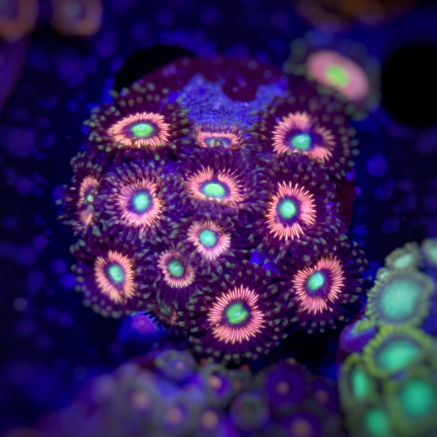 Eine kontrastreiche Krustenanemone mit großen Polypen in zwei ungewöhnlichen Farben.